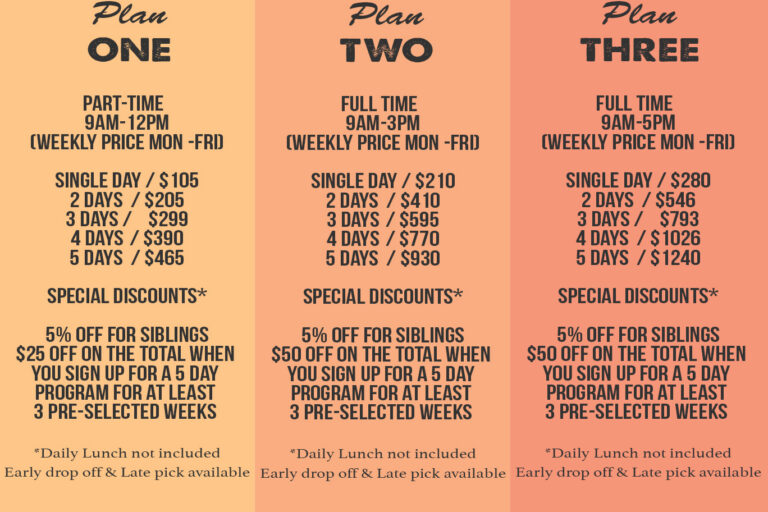 - PACKAGE: $25 off the total when you sign up for a 5-day program for at least 3 pre-selected week